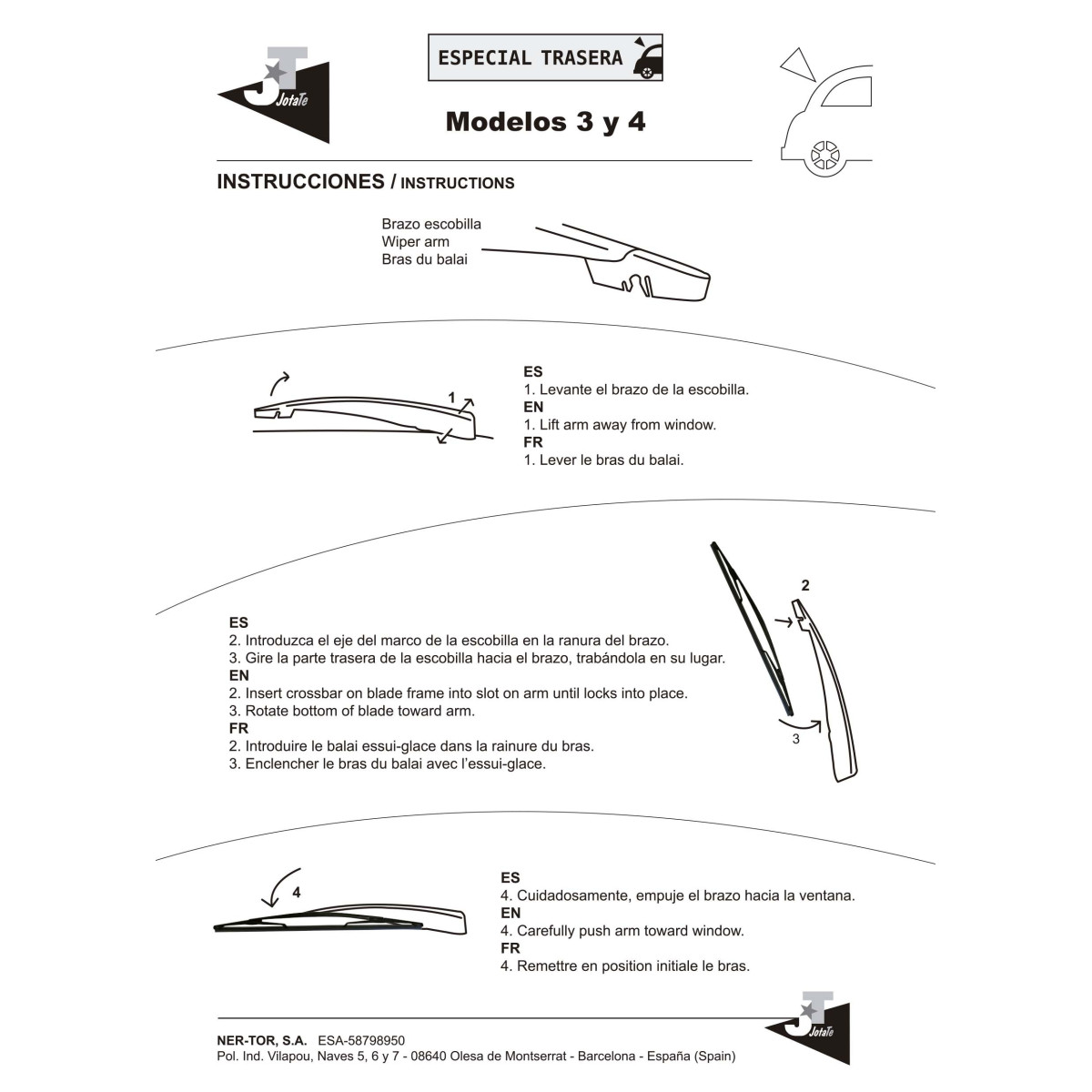 Escobilla Limpiaparabrisas JOTATE - Trasera Rígida Modelos Especiales - 1 unidad