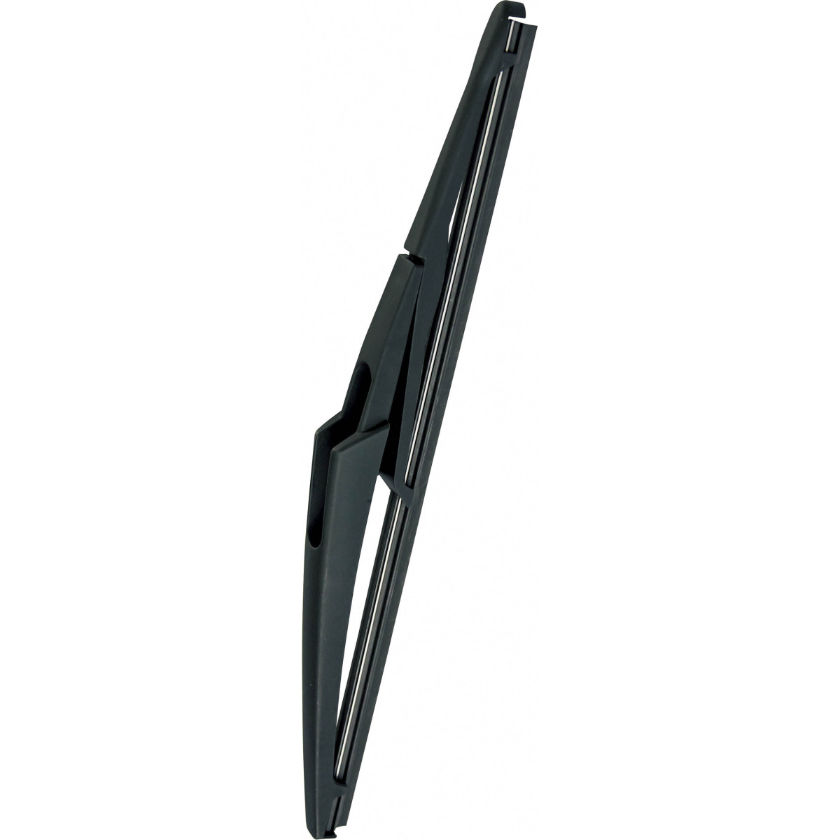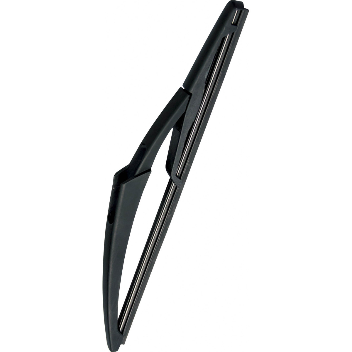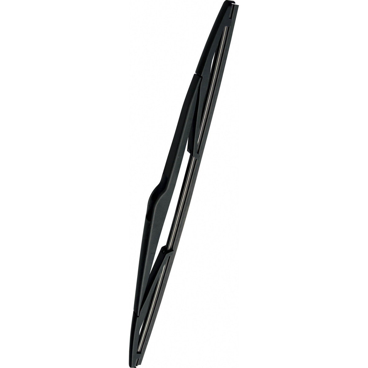 Escobilla trasera específica, con flexor metálico y cuerpo de plástico reforzado. Goma con recubrimiento de politetrafluoroetileno para un barrido suave y silencioso. Se presenta para ser montada en las aplicaciones especificadas, sin necesidad de manipulación ni elección de adaptadores.