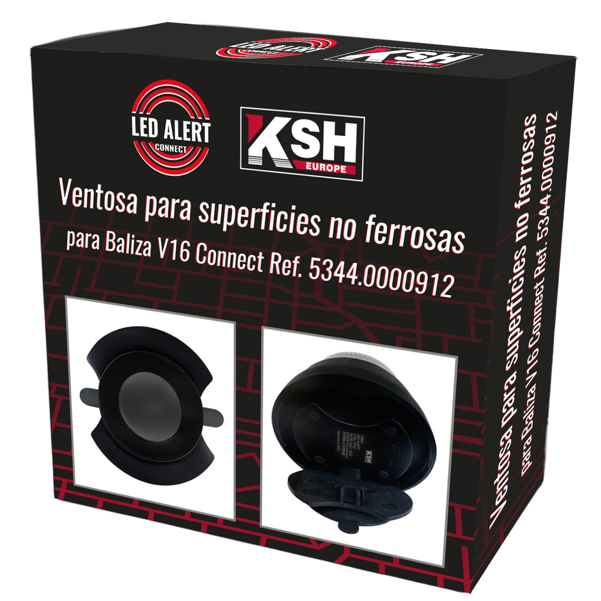 Especialmente diseñada para la Baliza V16 Connect (LED Alert Connect). Accesorio tipo ventosa, apto para fijar la baliza V16 Connect en superficies no ferrosas, donde el imán estándar no es efectivo. Permite la colocación segura garantizando visibilidad y cumplimiento normativo en situaciones de emergencia. Fácil instalación y retirada manual.