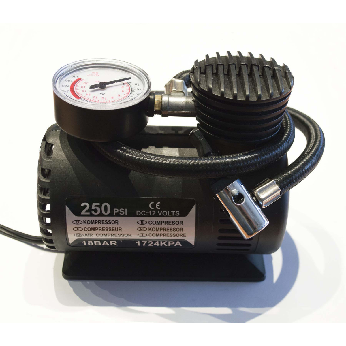 250 PSI 80W – Equipé d'un manomètre de précision et une prise sur allume cigare de 12V. Câble d'alimentation de 2,5 m pour faciliter son utilisation.