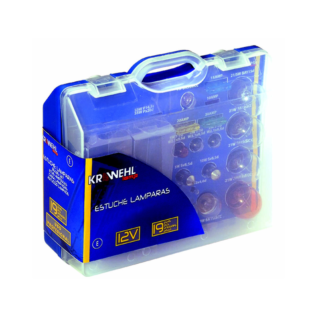Contenu : 2 x H-4 P43t 12V 60/55W 1 x P21/5W BAY15d 12V 21/5W 2 x P21W BA15s SCC 12V 21W 1 x Orange PY21W BAU15s SCC 12V 21W 1 x R5W BA15s SCC 12V 5W 1 x R10W BA15s SCC 12V 10W 1 x Navette C5W Sv8,5d 12V 5W 1 x Navette C10W Sv8,5d 12V 10W 1 x W1,2W T-5 W2x4,6d 12V 1,2W 1 x W3W T-10 W2,1x9,5d 12V 3W 1 x W5W T-10 W2,1x9,5d 12V 5W 1 x Orange WY5W T-10 W2,1x9,5d 12V 5W 1 x T4W BA9s MCC 12V 4W 1 x Fusible 10 Amp 1 x Fusible 20 Amp 1 x Fusible 15 Amp 1 x Fusible 30 Amp Afin d’augmenter la sécurité routière et d’éviter les accidents en situation de faible visibilité, la norme actuelle de l’Union Européenne recommande que tous les véhicules soient équipés d’un étui de rechange d’ampoules, afin de pouvoir changer les originales si celles-ci fondent ou cessent de fonctionner. Nos étuis d’ampoules de rechange permettent le changement d’ampoules de la majorité des automobiles, camions et motos.