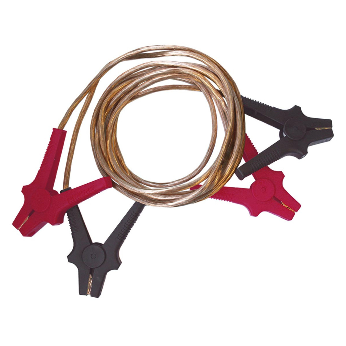 Les quatre pinces en cuivre sont professionnelles et optimisent le contact avec la batterie. Section du cable : 29 mm2. Câble recouvert de PVC pour votre sécurité. Enveloppe transparente du câble en cuivre : 0,31 mm x 385 câbles x diamètre ext 11 mm.