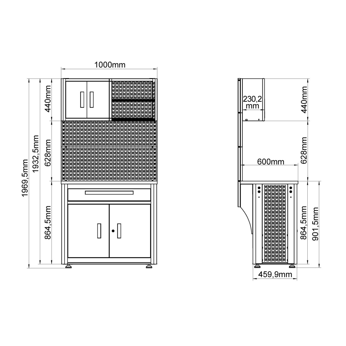 Ce module de mobilier d'atelier est conçu pour offrir efficacité, ordre et résistance dans des environnements de travail exigeants. Sa structure solide et sa surface de travail en bois permettent une utilisation intensive, ce qui le rend idéal pour les ateliers mécaniques et les professionnels de la maintenance. Sa conception modulaire lui permet de s'intégrer facilement aux autres composants du système d'ameublement et de s'adapter à diverses configurations. Le plan de travail de 30 mm d'épaisseur constitue une base solide pour les tâches lourdes, tandis que sa configuration assure une organisation efficace des outils et des matériaux, optimisant ainsi l'espace disponible.