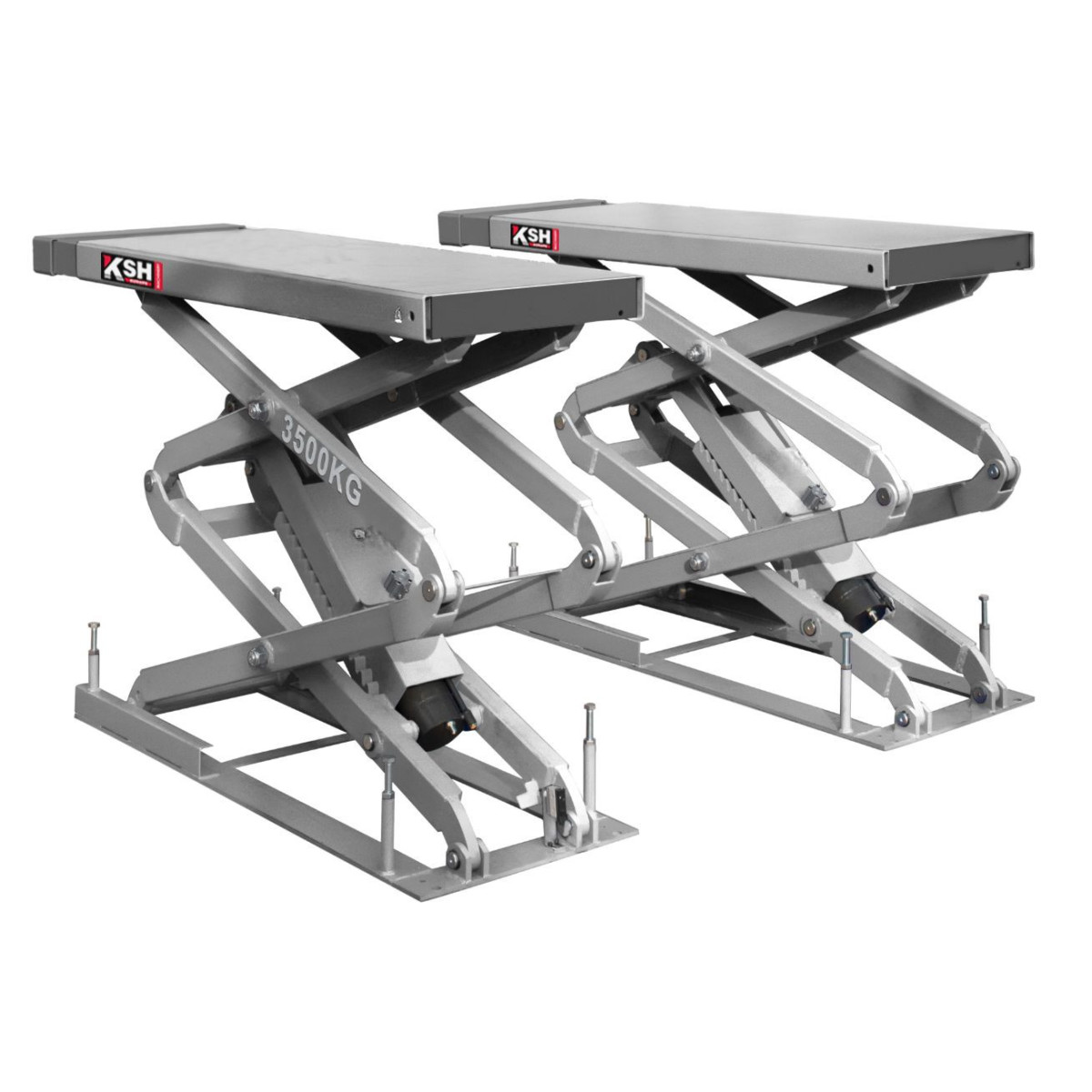 Conçu pour les installations encastrées, cet élévateur à ciseaux de 3,5 tonnes est la solution idéale pour les ateliers qui exigent une efficacité maximale et un espace libre dans la zone de travail. Sa conception robuste, associée à un système hydraulique à double entraînement (principal et auxiliaire), garantit un levage précis et sûr. Il intègre un nivellement par cellule photoélectrique, des rampes extensibles et des systèmes de sécurité avancés tels que le verrouillage hydraulique, des griffes mécaniques rainurées et une soupape anti-détonation. En outre, l'armoire de commande est équipée d'une alarme qui donne l'alerte pendant le processus de descente. Un outil professionnel qui optimise la productivité et garantit la conformité aux normes de qualité les plus élevées certifiées CE.