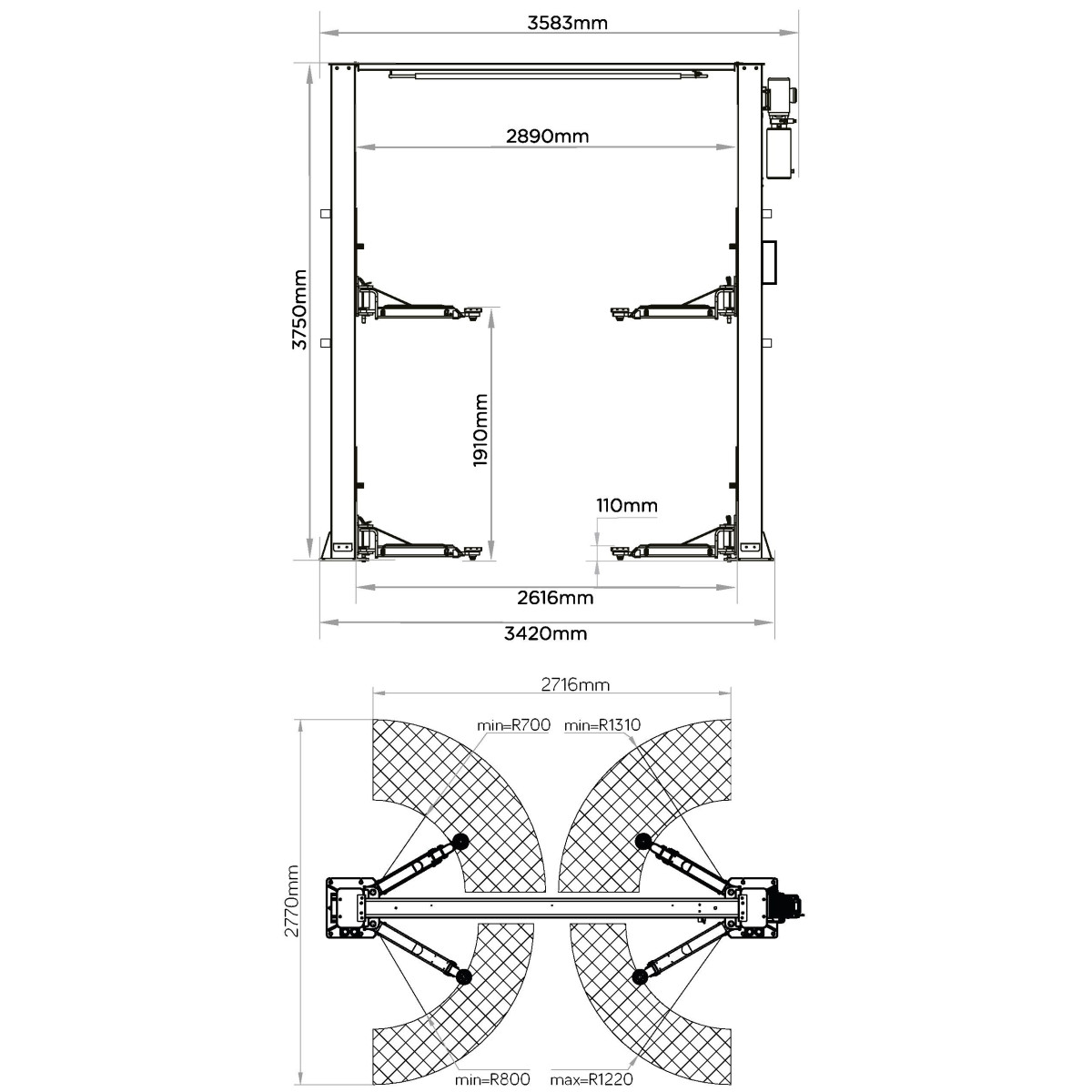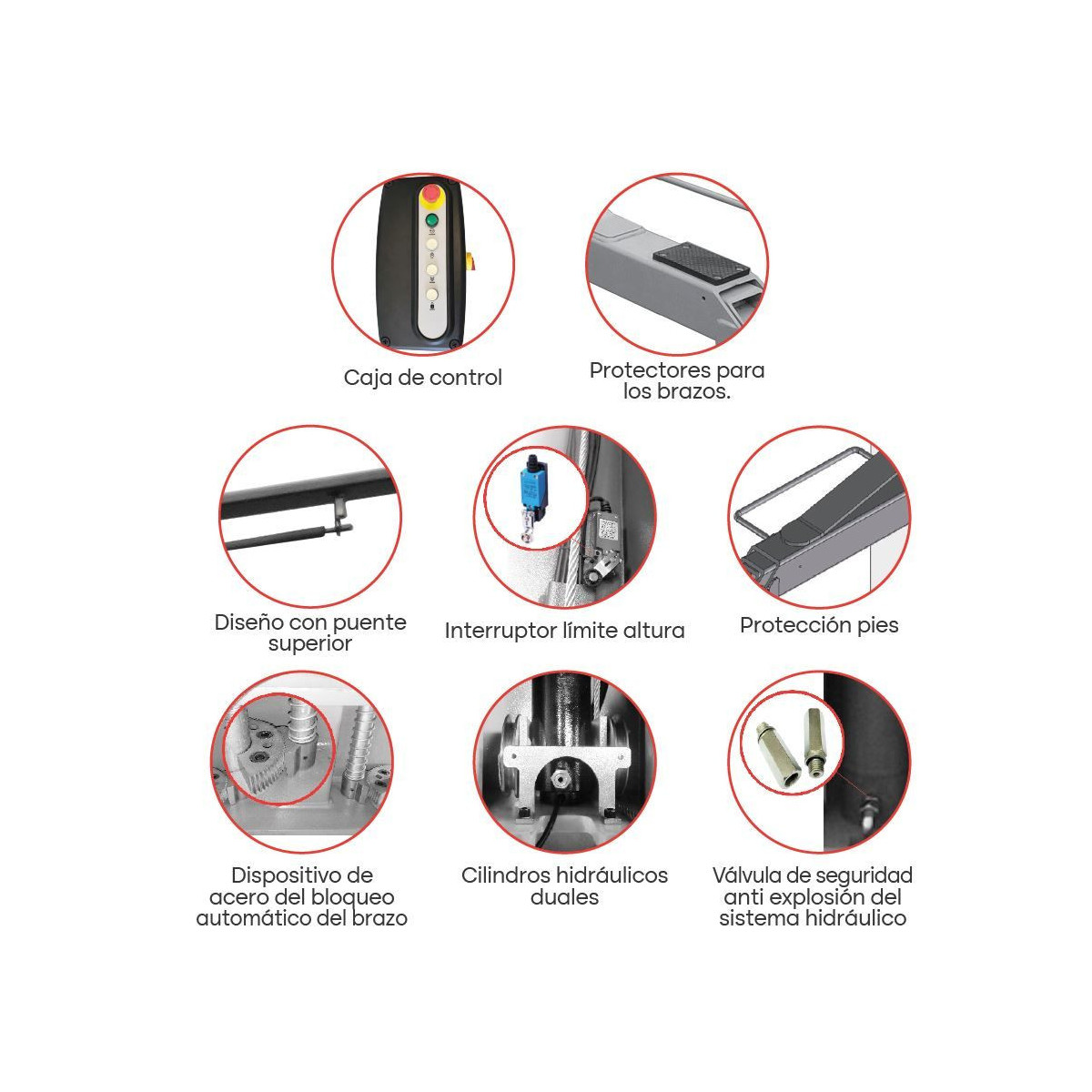 L'élévateur automatique 2 colonnes de 4,2 tonnes avec pont supérieur est une solution robuste, sûre et polyvalente pour les ateliers professionnels. Sa structure en acier de 5 mm et son système de câbles synchronisés garantissent un levage uniforme et stable jusqu'à 4,2 tonnes. Conçu pour un usage intensif, il est équipé d'un moteur en fonte de 2,2 kW avec des cycles de levage et d'abaissement rapides. Une sécurité supplémentaire est assurée par des protections de porte, des tampons en caoutchouc réglables sur 2 hauteurs, une protection des pieds et des protections des bras. Il est équipé d'une soupape de sécurité pour éviter l'explosion du système hydraulique. Moteur en aluminium, protège-chaîne, graisseur facile d'accès. Conforme à la Certification CE.