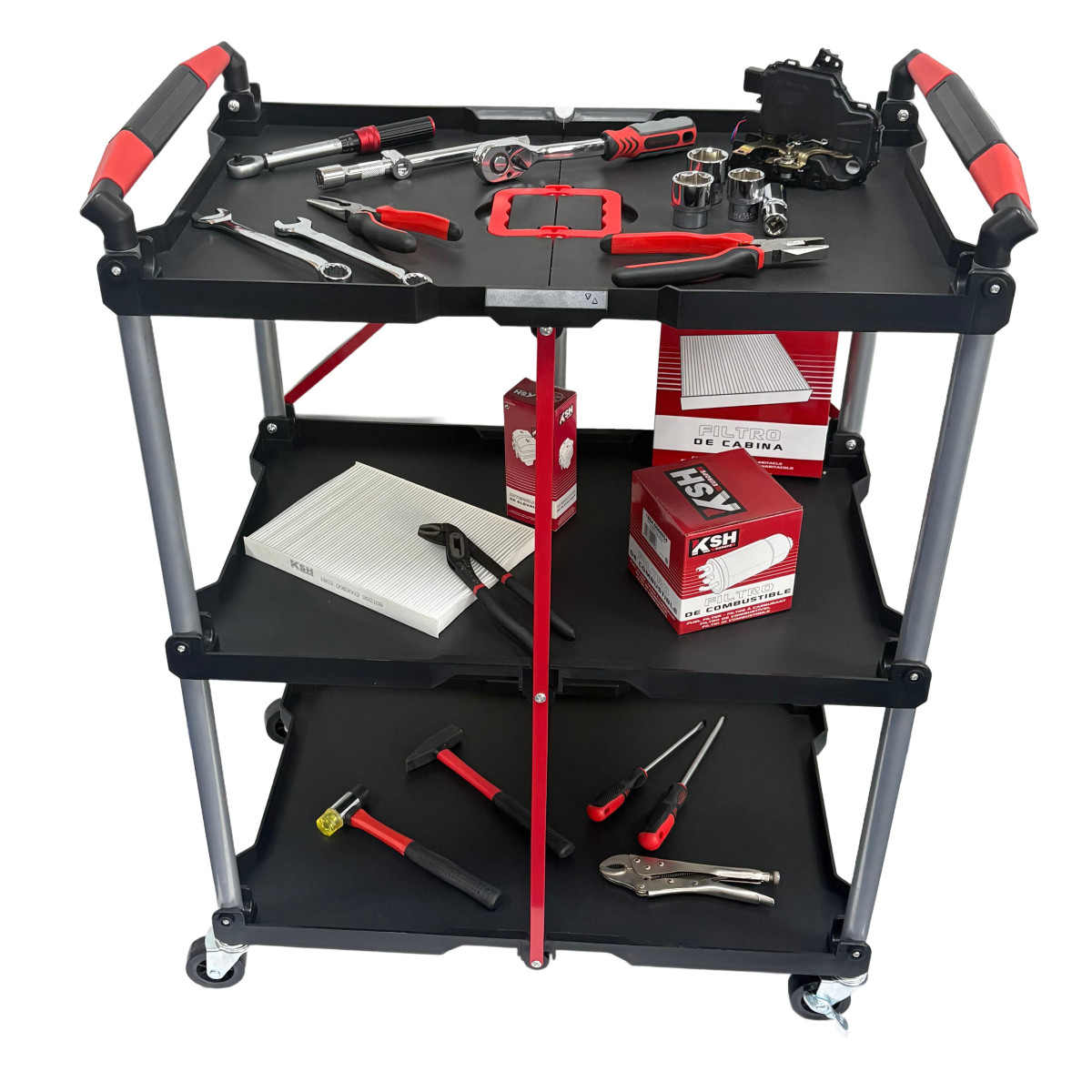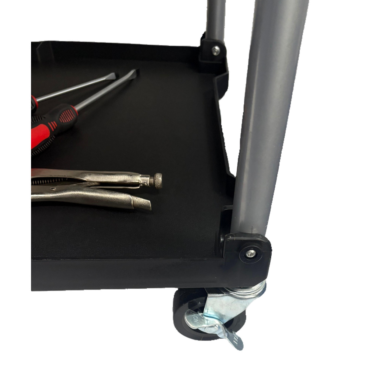 Le Servante à Outils Pliable constitue une option pratique et robuste pour les professionnels qui ont besoin d'optimiser l'espace sans sacrifier la capacité de charge ou la mobilité. Leur conception ergonomique et légère permet de les plier et de les transporter facilement, ce qui les rend idéaux pour les ateliers disposant de peu d'espace ou pour les tâches mobiles. Ils sont fabriqués à partir de matériaux durables tels que le polypropylène, l'aluminium et le caoutchouc/silicone, ce qui garantit une structure solide et légère à la fois. Équipés de grandes roulettes pivotantes et de freins de sécurité, ces chariots assurent stabilité et contrôle lors des déplacements. Disponibles en deux tailles, ils s'adaptent aux différents besoins de stockage et d'utilisation, alliant fonctionnalité et robustesse dans tout environnement de travail.