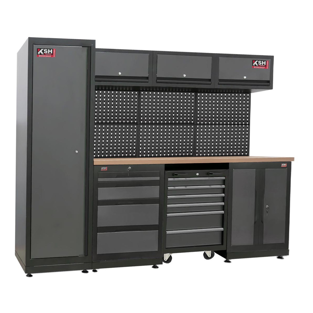 L'armoire d'atelier est conçue pour apporter ordre, solidité et praticité à tout environnement mécanique professionnel. Sa structure modulaire permet une configuration efficace de l'espace, facilitant l'accès rapide aux outils et au matériel de travail. Grâce à son épais plan de travail en bois, elle offre une surface solide et durable pour toutes sortes de tâches. Cet ensemble comprend un chariot non équipé, idéal pour le personnaliser en fonction des besoins spécifiques de l'atelier. La possibilité de compléter l'ensemble avec des accessoires supplémentaires en fait une solution polyvalente, adaptée aux exigences de chaque professionnel. Sa conception robuste et fonctionnelle garantit des performances fiables dans l'utilisation quotidienne de l'atelier.