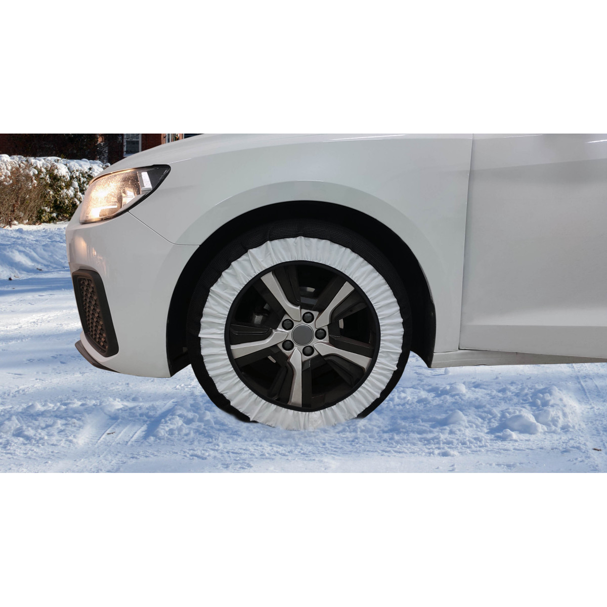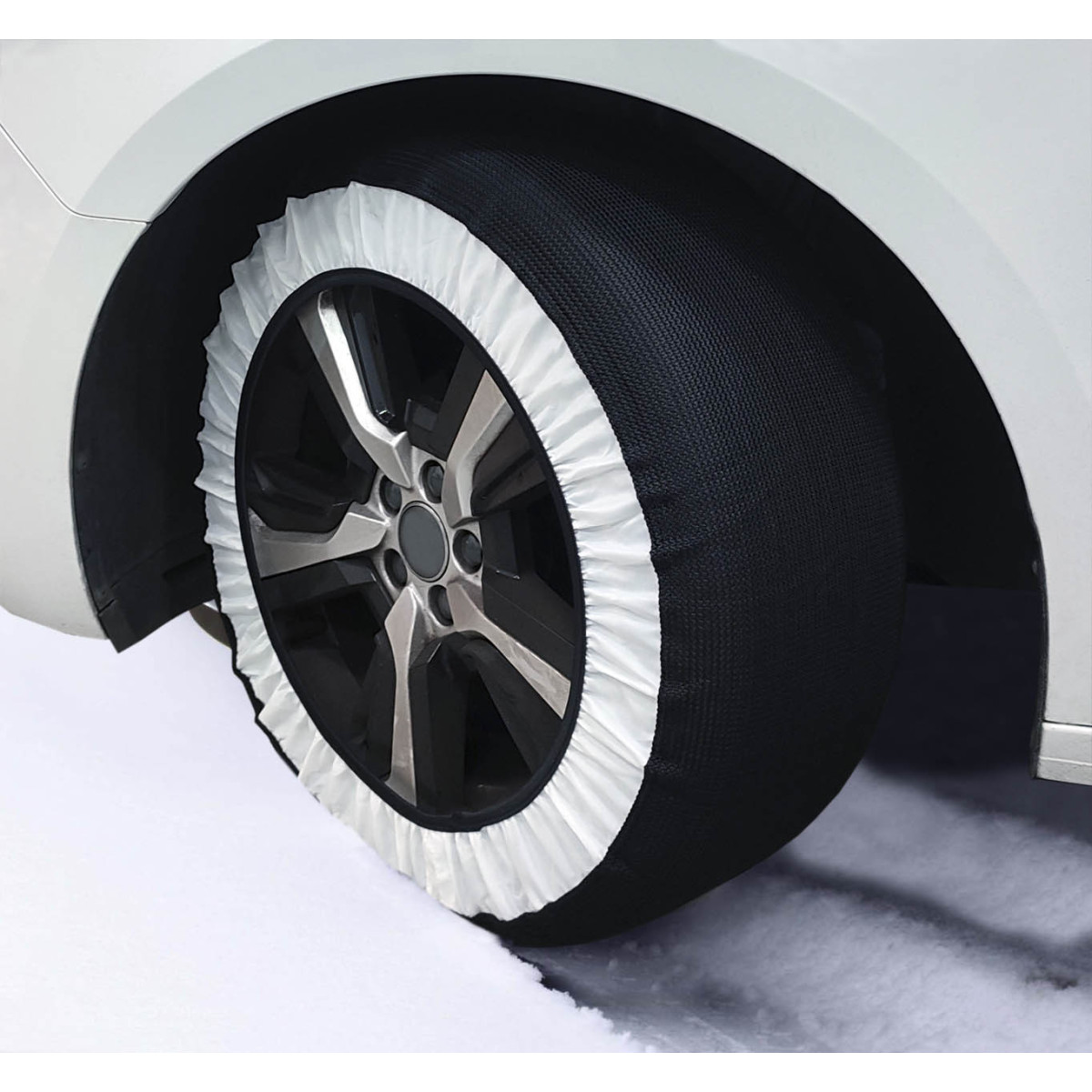 Increase your driving safety in adverse snow weather conditions. Textile snow Chains with maximum adherence. 100% polyester. Suitable for ABS and ESP systems. Ultra-fast assembly in 2 minutes. Washable. Manufactured according to EU standards - Ö-Norm certificate and new EN 16662-1 certificate. Includes: 2 pieces textile snow chain, transport bag and gloves. IMPORTANT: Do not drive over 50 km/h while using textile snow chains.