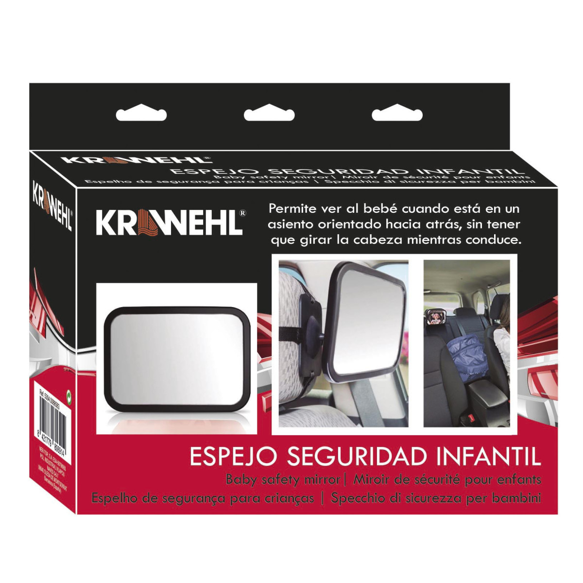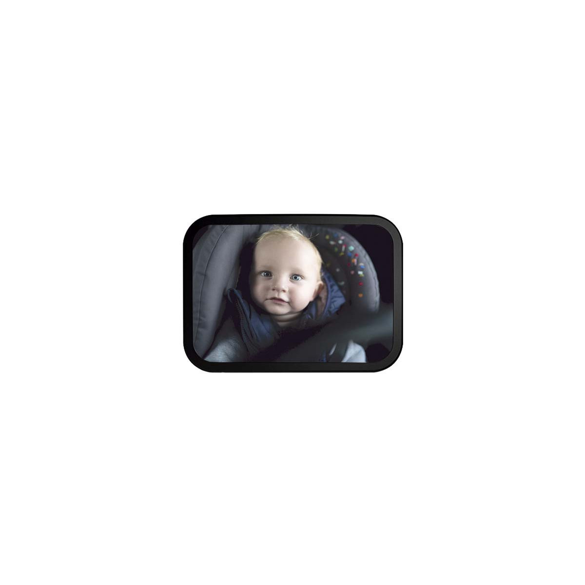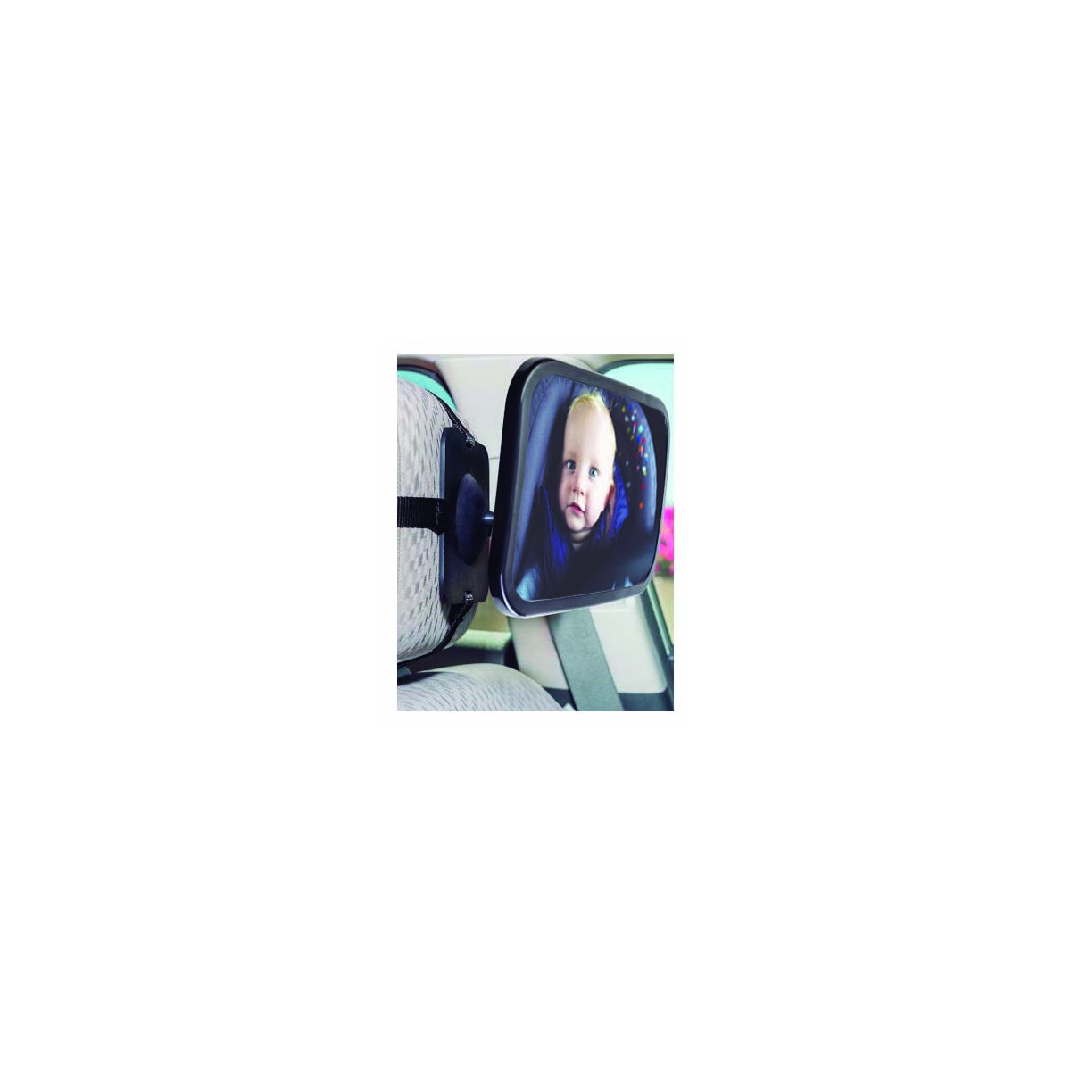 Interior mirror for child surveillance. It allows you to see the baby when he is sitting in its child seat, facing the opposite direction of travel. You will not need to turn your head while driving. You will be able to see the baby from your rear view mirror and focus your attention on driving.