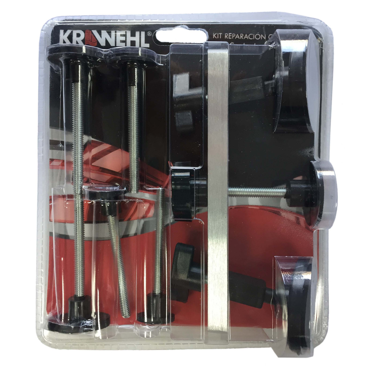 This dent repair kit is designed to remove dents from sheet metal efficiently and without damaging the paintwork. Equipped with a robust straightening bridge and 7 tips of different diameters, it allows you to work on dents of any size and in multiple areas of the vehicle. It is an indispensable tool for body shops looking for professional results without the need for repainting. Thanks to its modular and user-friendly design, it offers a safe, clean and reusable method of restoring the vehicle surface to its original condition.