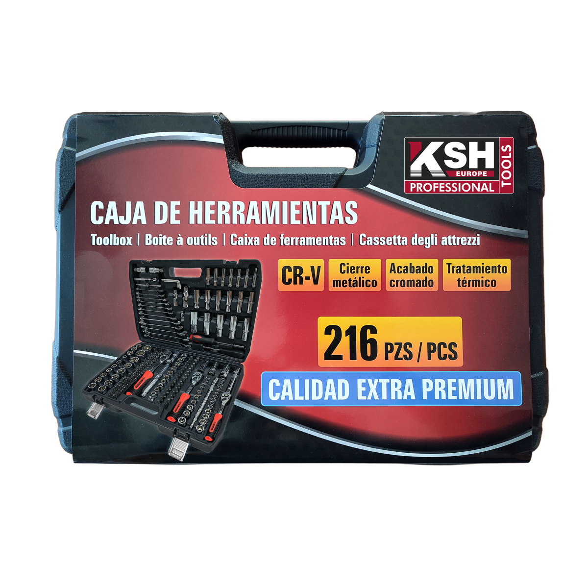 The KSH Europe Tool Box is a professional and versatile solution that brings together everything you need for demanding mechanical work in a single case. Made of EXTRA PREMIUM QUALITY CR-V steel, it offers excellent resistance to wear and tear, with a chrome-plated finish for enhanced durability and easy cleaning. It features a sturdy metal lock and a well-organised interior design for quick access to each tool. Every component has been heat-treated, ensuring long life and reliable performance under heavy use. Ideal for workshops and professionals who value efficiency, safety and organisation in their day-to-day work.