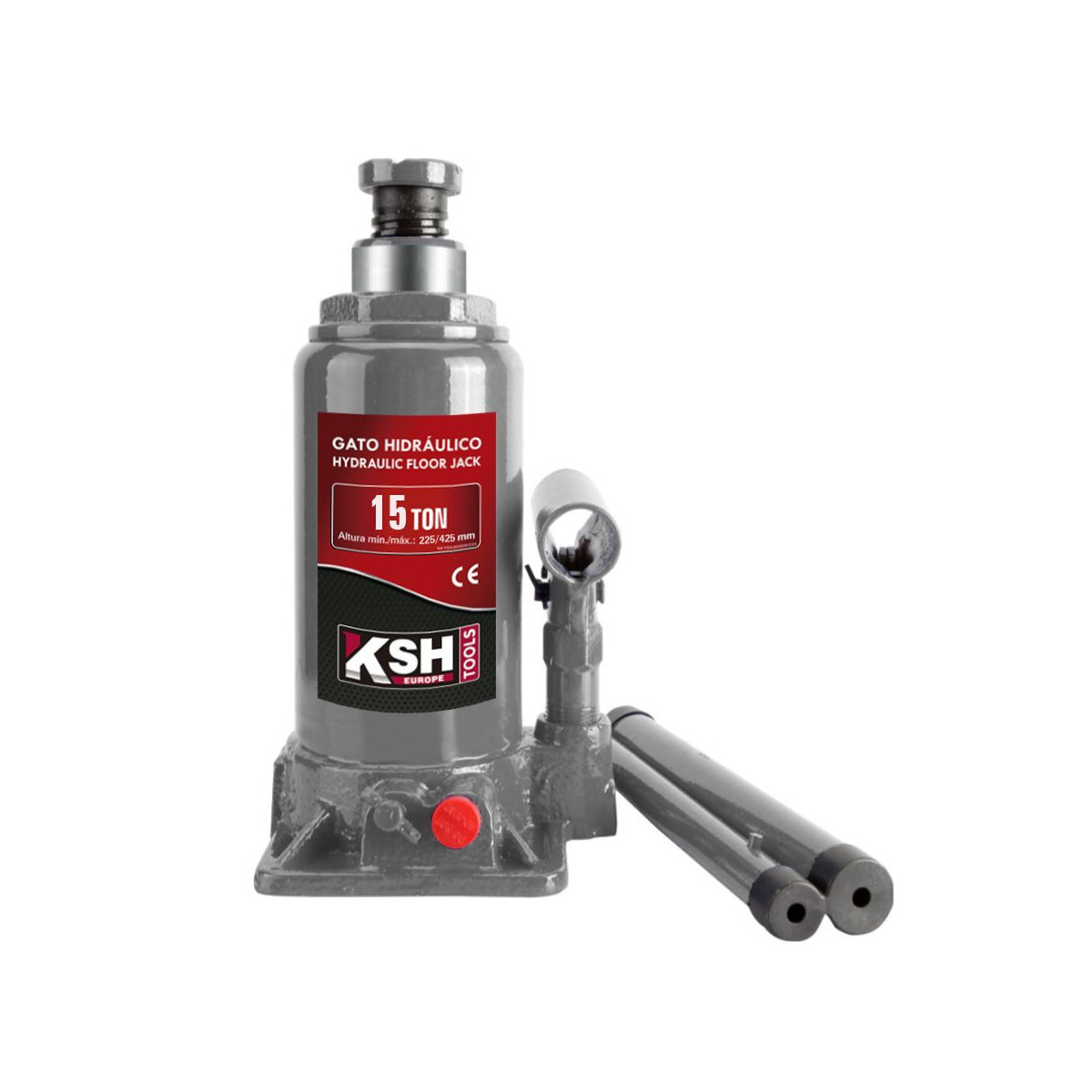 The Hydraulic Bottle Jack with a 15 tonne capacity is an indispensable tool in any professional workshop. Its compact and portable design makes it easy to handle and transport, while its wide and stable base provides great safety during use. Thanks to its detachable lever and two-piece handle, it allows ergonomic and efficient operation, ideal for vehicle maintenance and repair tasks. Manufactured to European quality standards, this jack guarantees reliable and safe performance, complying with CE approval.