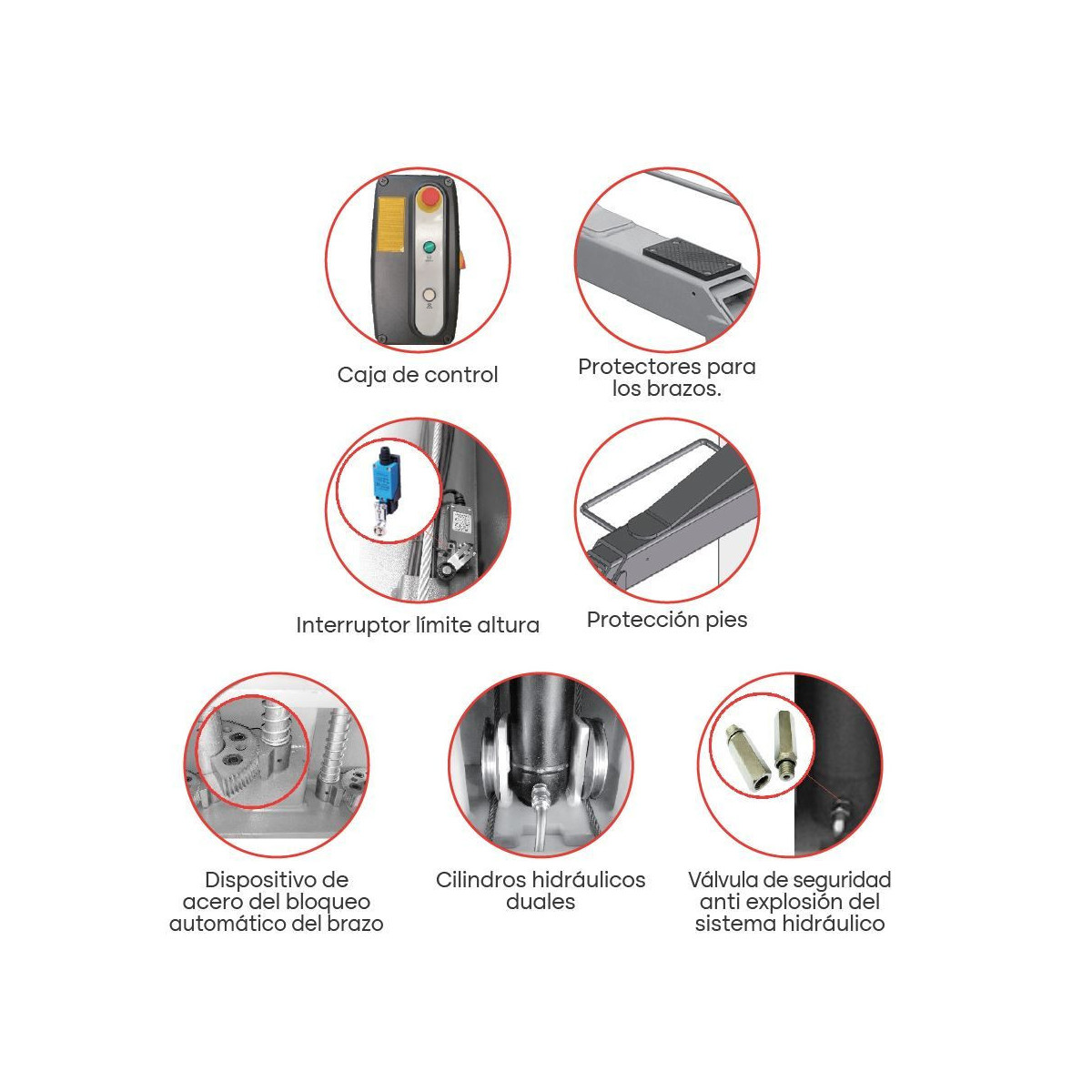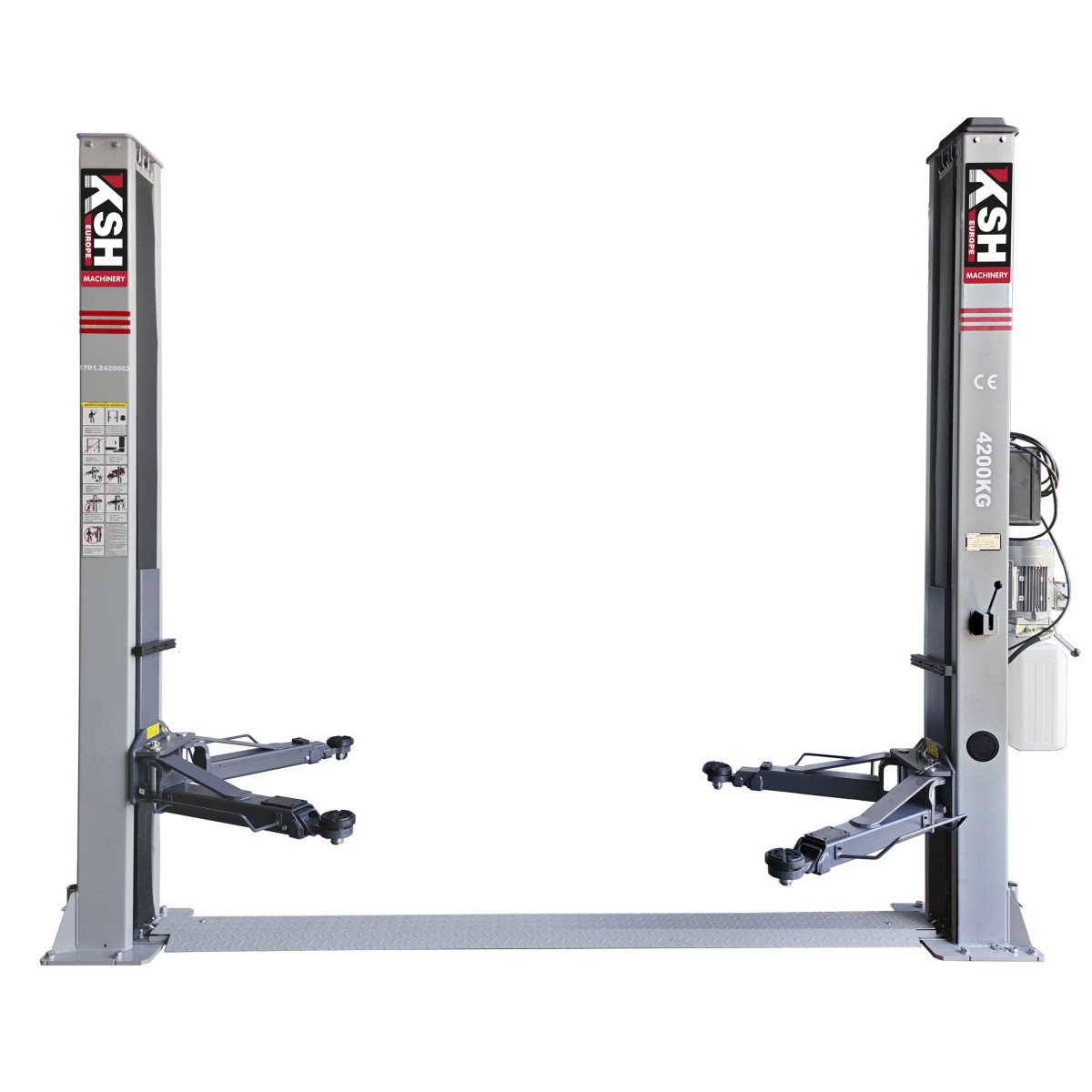 The 4.2 tonne semi-automatic 2-post lift is an indispensable tool for workshops requiring reliability, safety and efficiency in vehicle lifting. Its robust structure, combined with an adjustable arm system (2+3), offers great versatility for different types of vehicles. It incorporates safety features such as anti-explosion valve, arm and door guards, as well as automatic arm locking, ensuring safe operation at all times. The design includes an aluminium motor, synchronised cables and chain guard, facilitating maintenance and increasing durability. Accredited with CE Certification, it meets the highest safety standards in the professional environment.