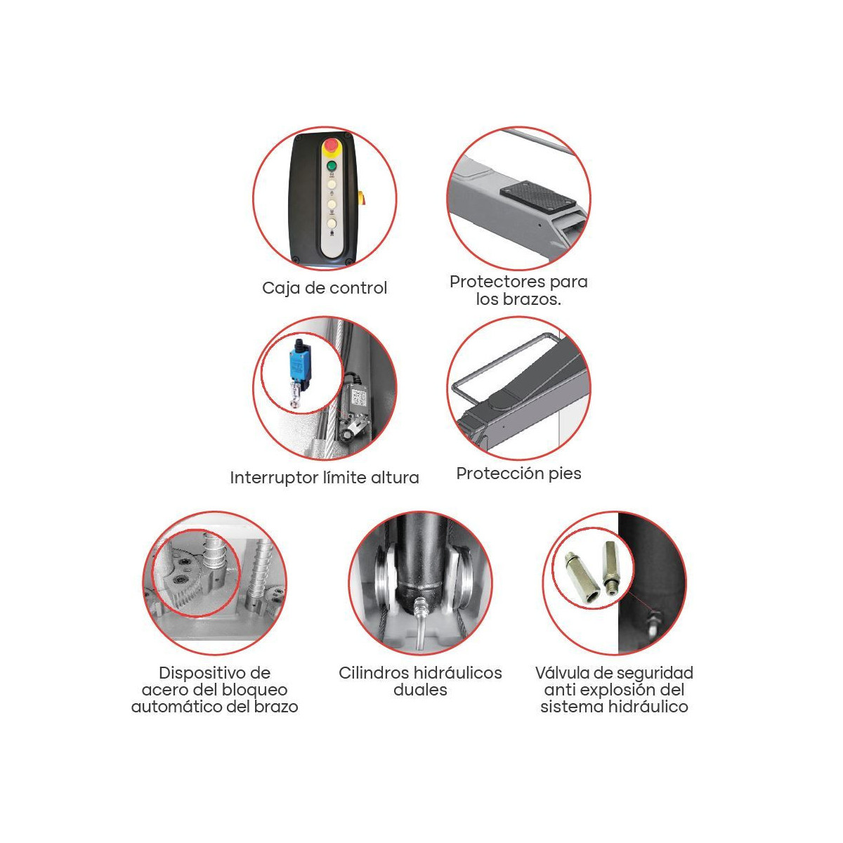 The 4.2 T Automatic 2-Column Lift offers a reliable and robust solution for workshops that require precision, safety and adaptability in their maintenance operations. Equipped with a cable synchronisation system, 3-height adjustable rubber pads and door protectors, it ensures safe and comfortable vehicle handling. Its 2.2 kW aluminium motor with dust protection and accessible lubrication design ensures efficient performance and long service life. The 5 mm thick steel structure makes it highly resistant to intensive use. CE-certified, it meets the highest quality standards required in the professional sector.