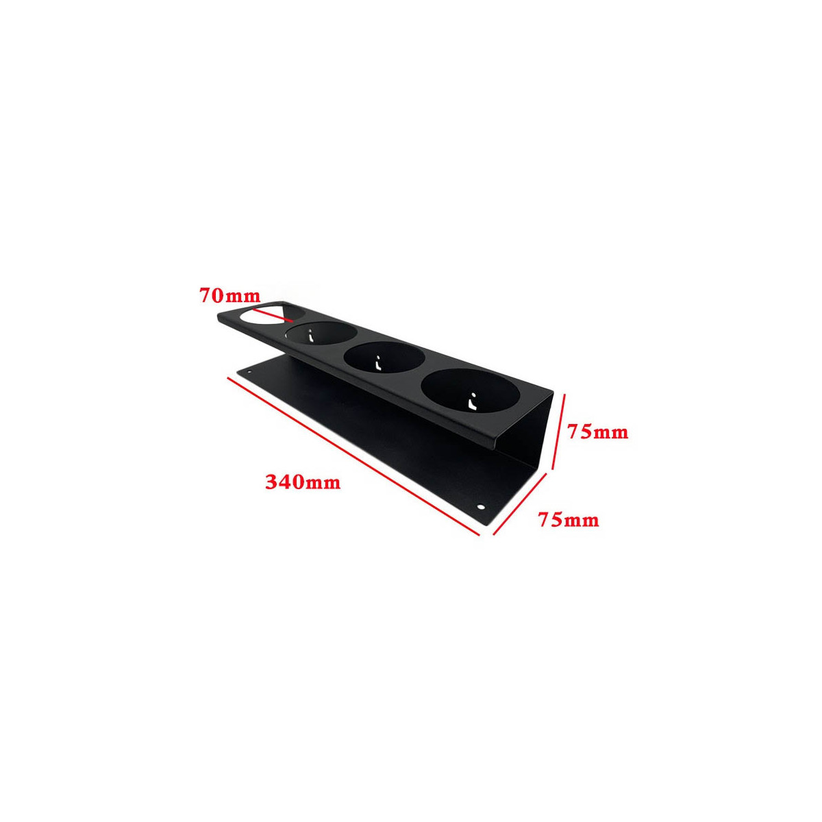 The Bottle Holder is the ideal solution for maintaining order and efficiency in professional workshops. Specifically designed to hold cans or aerosols with a diameter of up to 70 mm, its structure allows for a secure and stable hold during daily use. Thanks to its compact and functional format, it facilitates quick access to products without taking up unnecessary space in the work area. Its robust construction and well-proportioned dimensions guarantee long-lasting durability, even in demanding environments. Perfect for mounting on walls, tool trolleys or shelves, this stand is an indispensable ally in the organisation of workshop consumables.