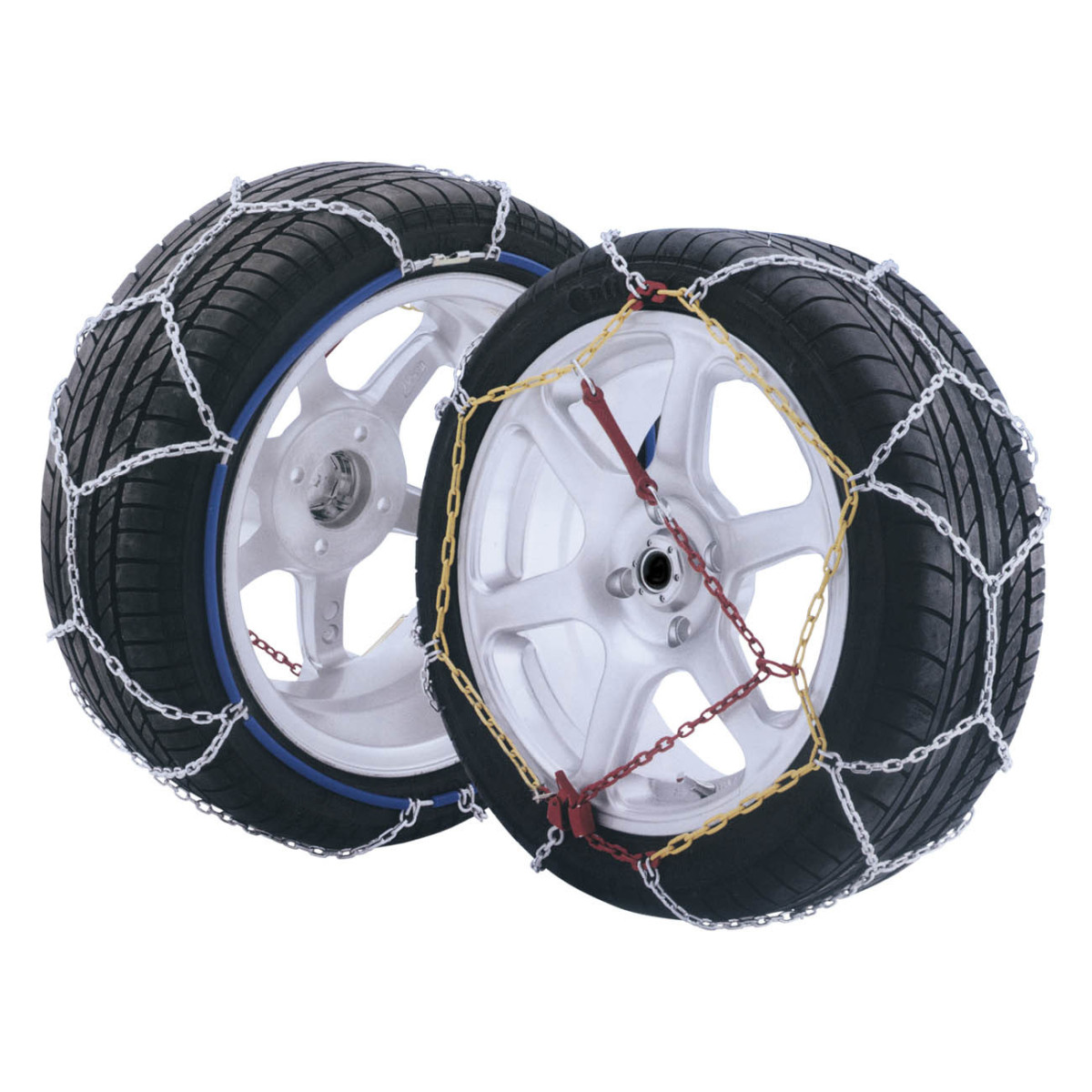Corrente em aço tratado de alta resistência. A corrente para neve de elo quadrado é UNIVERSAL, mas especialmente indispensável para os veículos com sistema de travagem ABS.