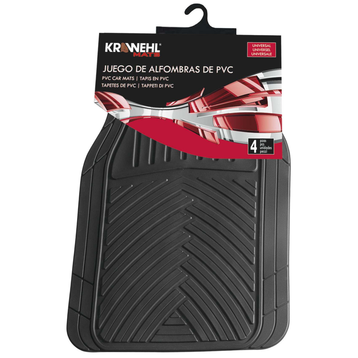 Conjunto de 4 tapetes universais em PVC. QUALIDADE SUPERIOR. Adaptável a 90% dos veículos do mercado. Muito flexível. O design do tapete permite-lhe cortar o contorno para melhor o adaptar ao piso do seu veículo. O perfil anatómico e a base antiderrapante asseguram que o tapete não escorrega, evitando assim os obstáculos à condução, bem como o desconforto dos passageiros. Medidas: Tapetes dianteiros: 45 cm x 68 cm. Tapetes traseiros: 43 cm x 41 cm. Peso: 3,00 kg.