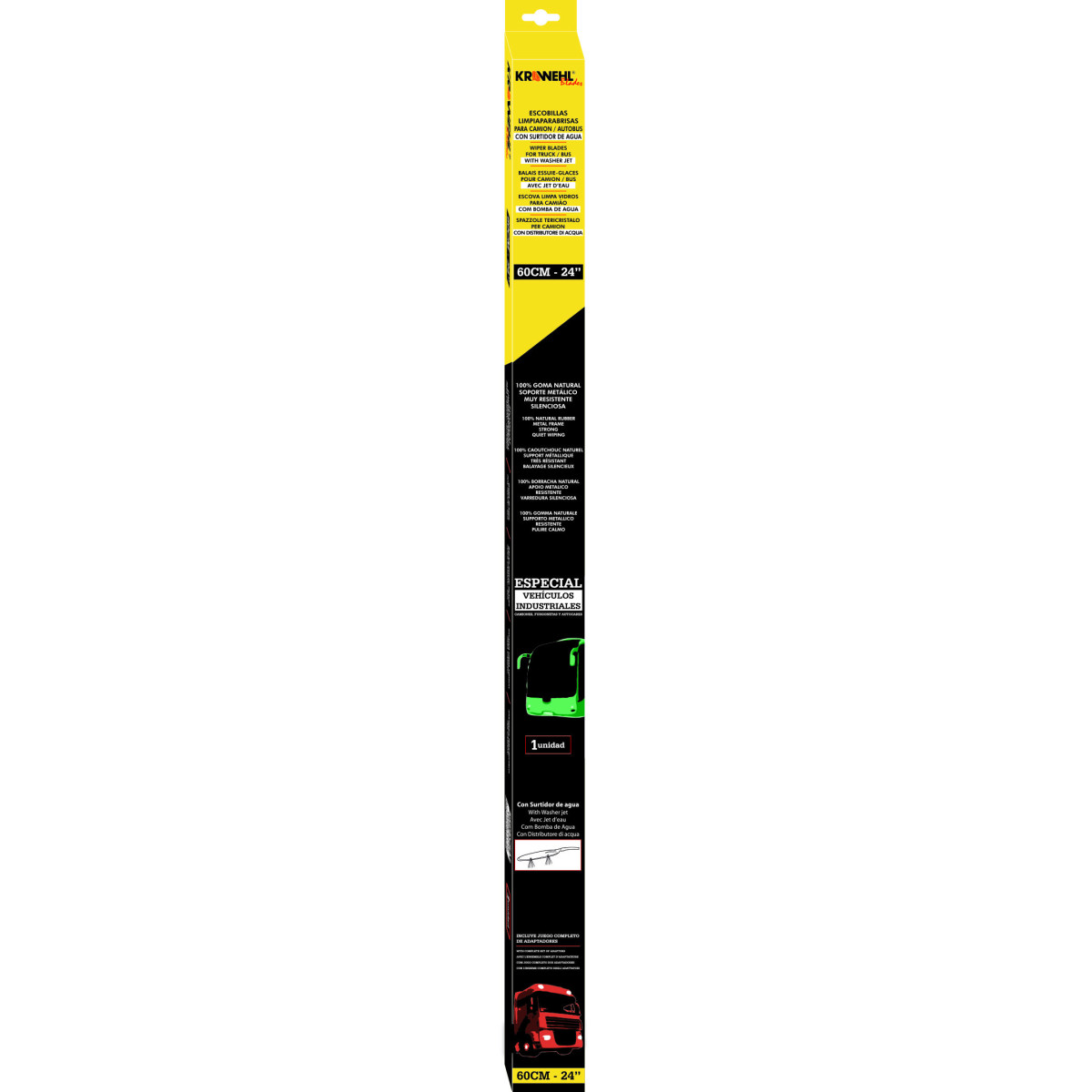 Escova metálica especial para veículos comerciais com jato de água incorporado. Corpo reforçado com tratamento anti-corrosão. Varrimento ótimo e silencioso. Suporte e guarnição metálicos. Borracha natural de alta qualidade com revestimento de politetrafluoroetileno. Conjunto completo de adaptadores incluídos.