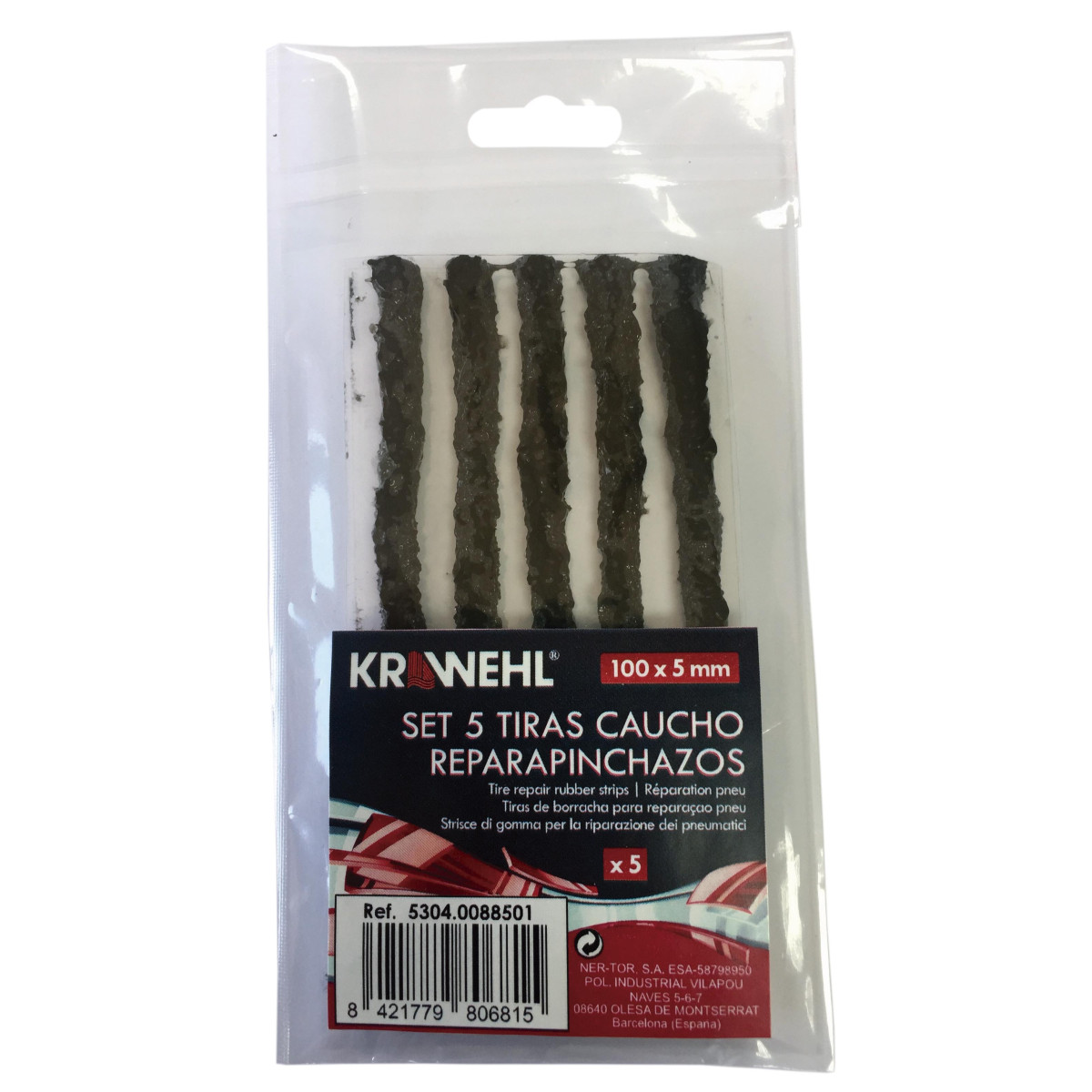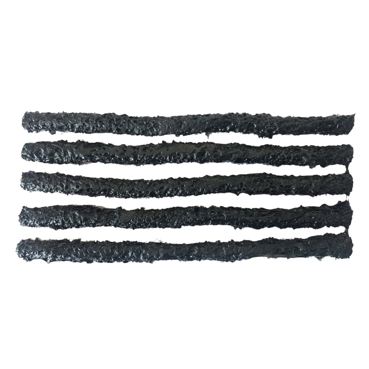 5 tiras de borracha para reparação de furos, cada uma com 100 mm de comprimento x 5 mm de diâmetro.
