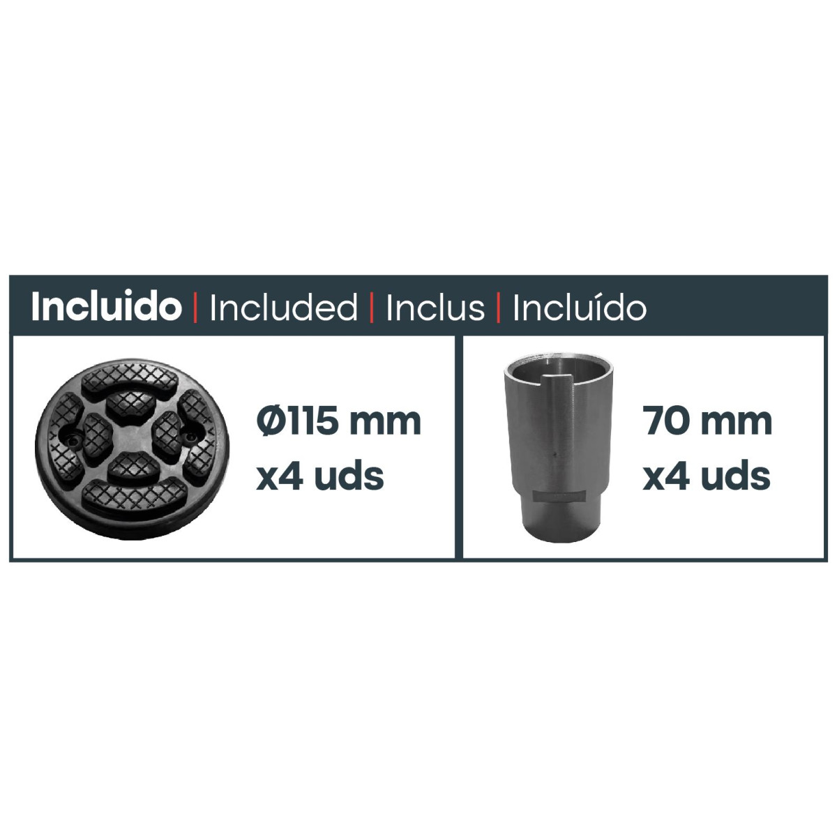 O Elevador automático de 2 postes 4T H-Base é uma solução robusta, segura e versátil para oficinas profissionais. A sua estrutura em aço de 5 mm e o sistema de cabos sincronizados garantem uma elevação uniforme e estável até 4 toneladas. Concebido para uma utilização intensiva, inclui um motor de ferro fundido de 2,2 kW com ciclos rápidos de elevação e descida. A segurança adicional é garantida pelas protecções das portas, almofadas de borracha ajustáveis a 2 alturas e proteção da corrente. Possui um bocal de lubrificação de fácil acesso e braços extensíveis, permitindo a sua adaptação a diferentes veículos. Está disponível nas versões monofásica 230V e trifásica 400V, o que facilita a sua integração em qualquer instalação. Está em conformidade com a certificação CE.